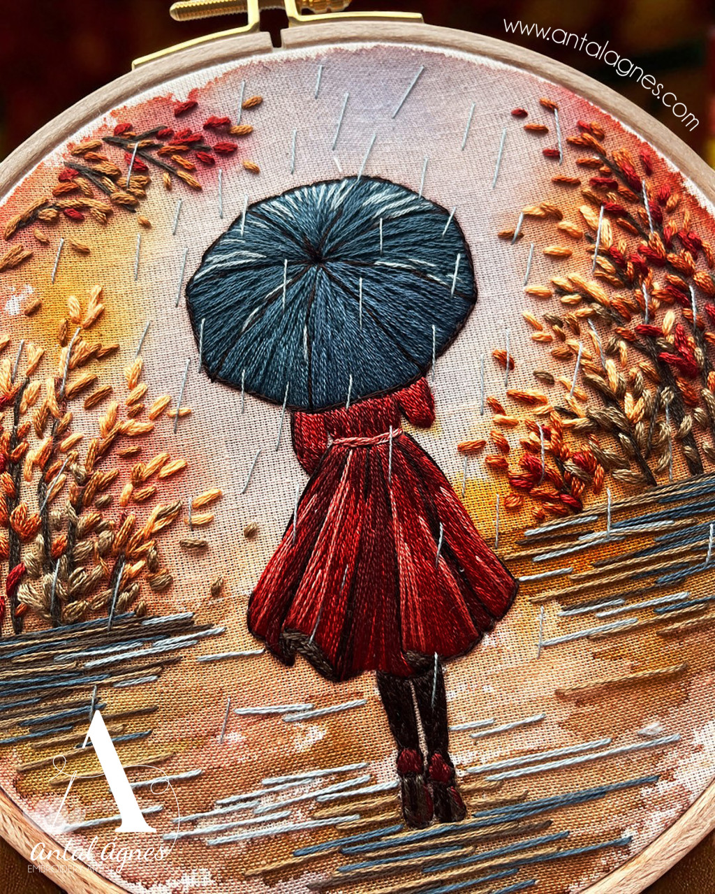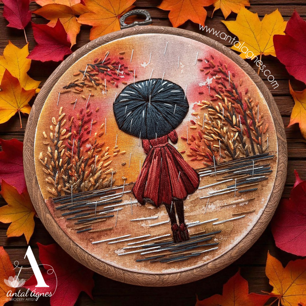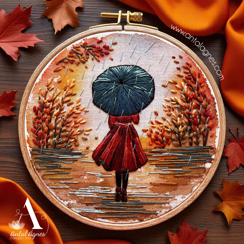 A hímzőkészlet segítségével Te magad is el tudod készíteni ezt a hangulatos őszi képet, melyben ötvözzük az akvarell festést és a hímzést.