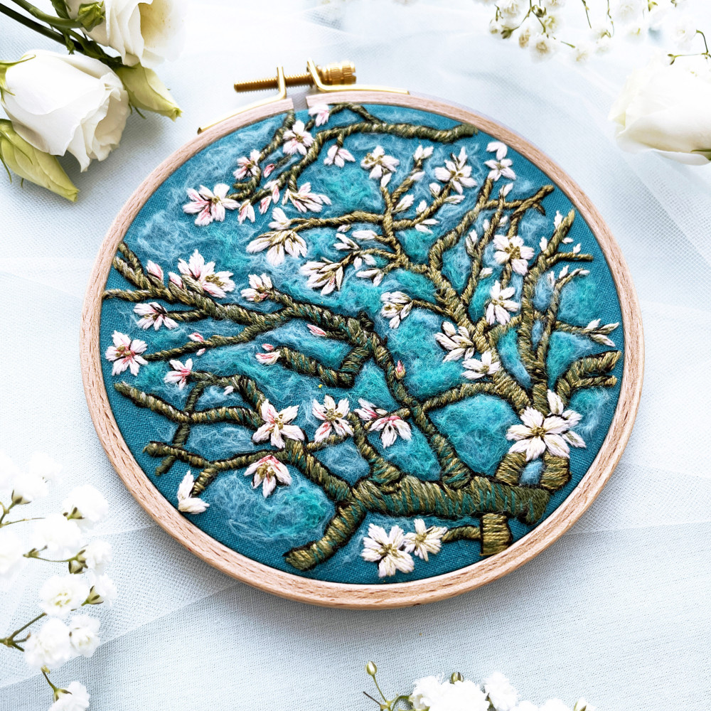A hímzőkészlet segítségével Te magad is el tudod készíteni a Van Gogh inspirálta Madulavirágzás faliképet.