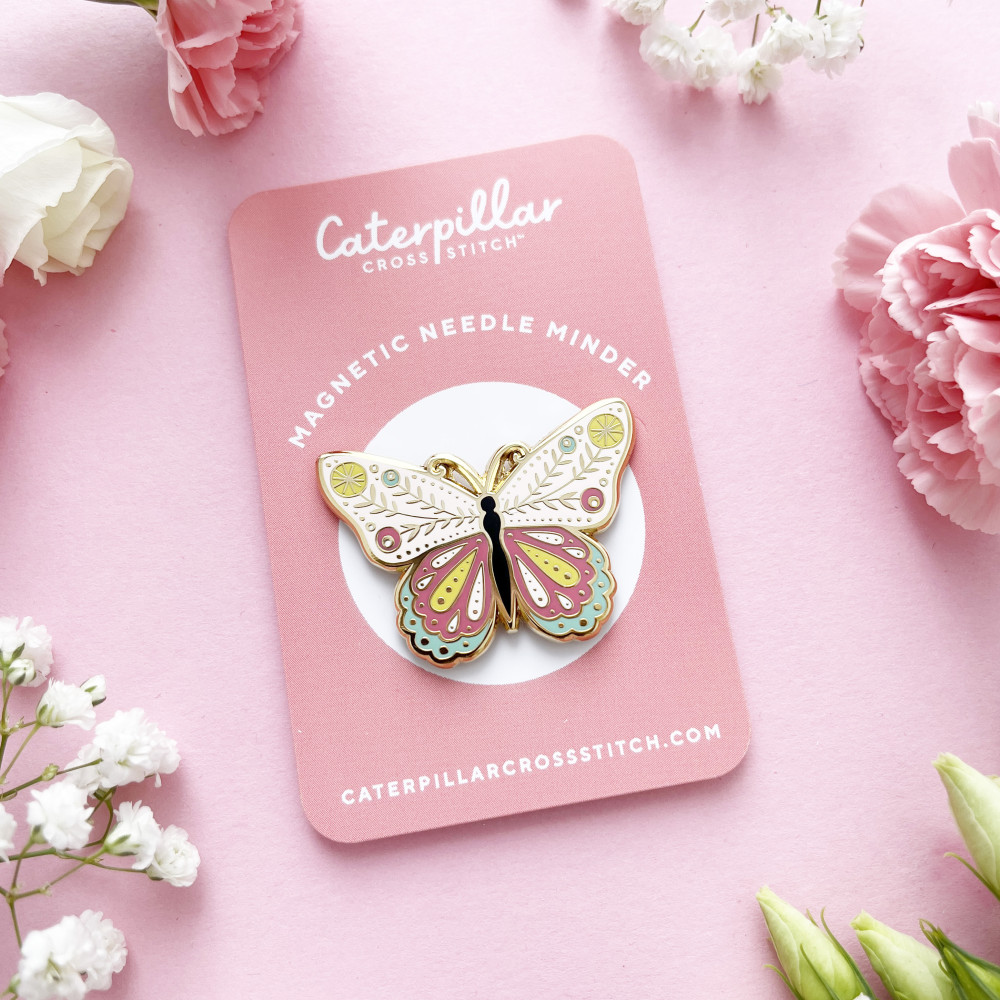 The back of the needle minder has a magnet, so it can be easily attached to our fabric.
