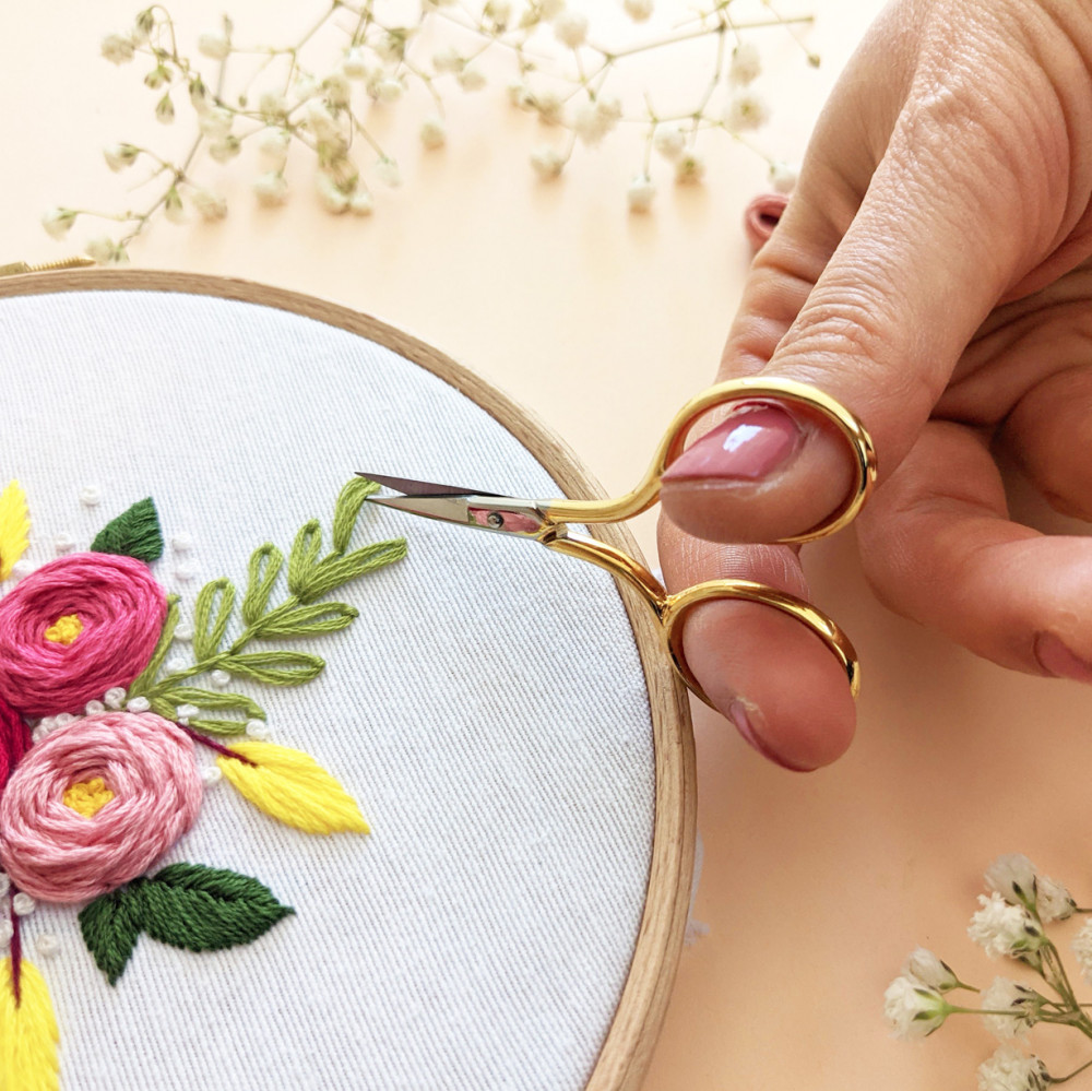 This charming, gold-colored embroidery scissors is an essential tool for embroidery.