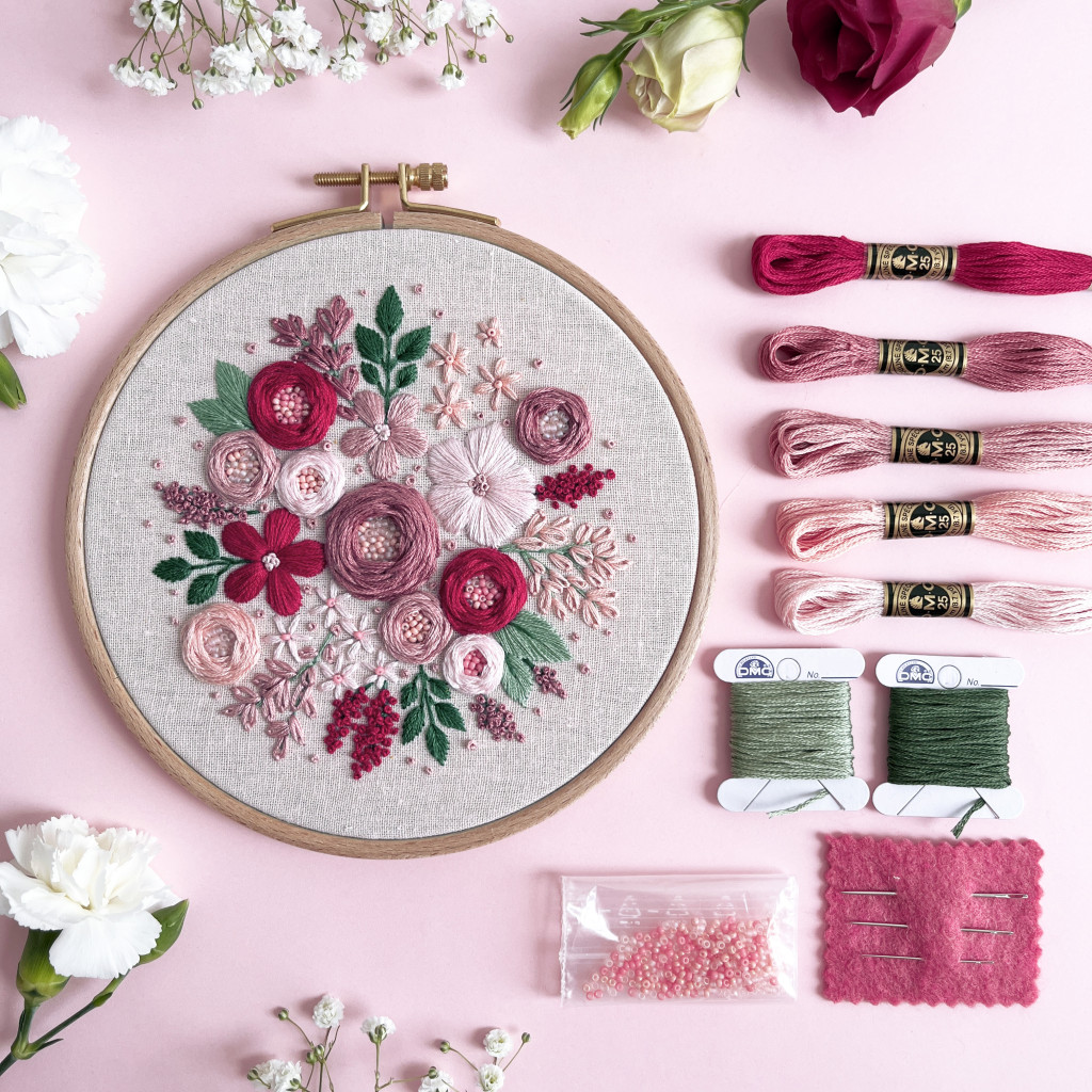 - DMC stranded embroidery floss (5 full skeins and 2 colors spooled)