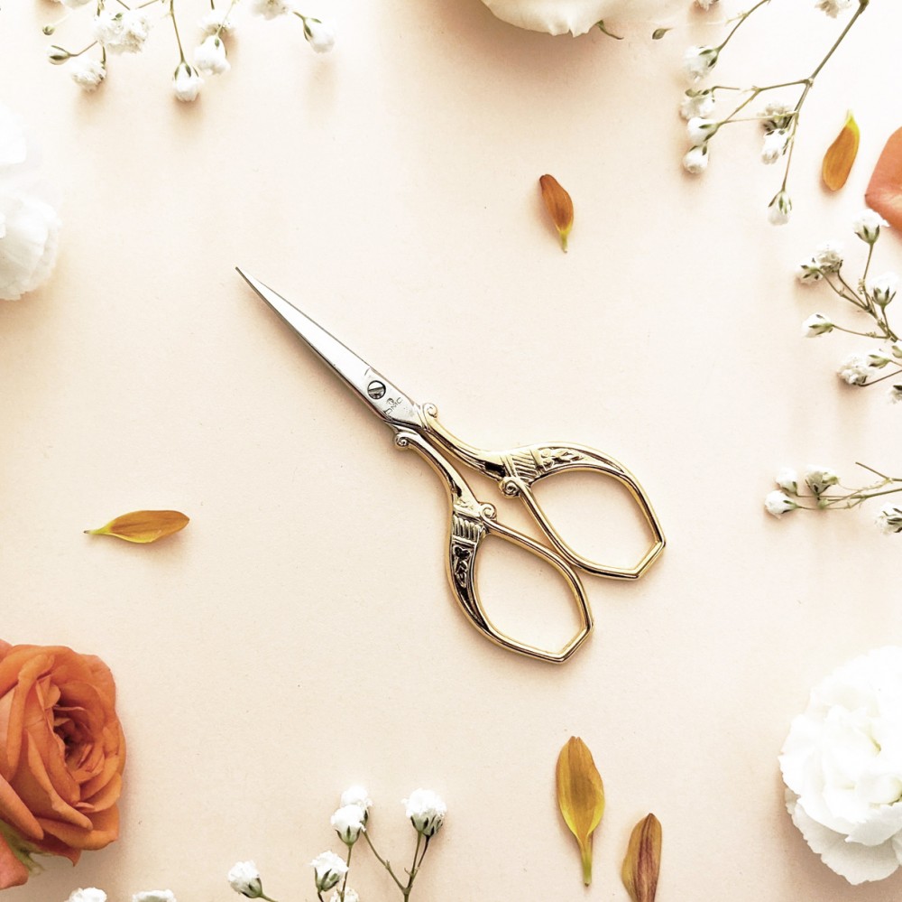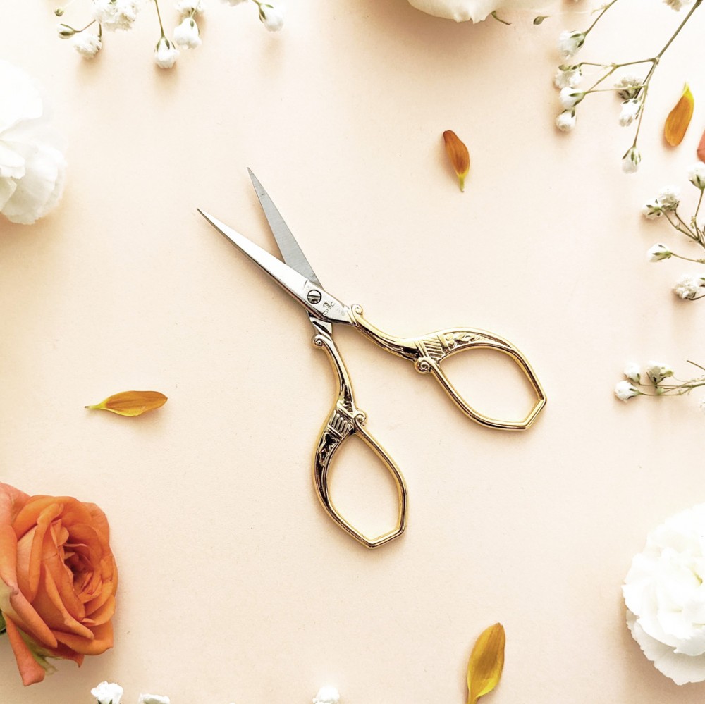 The DMC premium embroidery scissors are made of stainless steel and feature decorative, gold-colored handles. Its sharp tip and blades ensure a perfect cut.