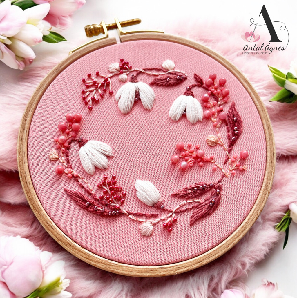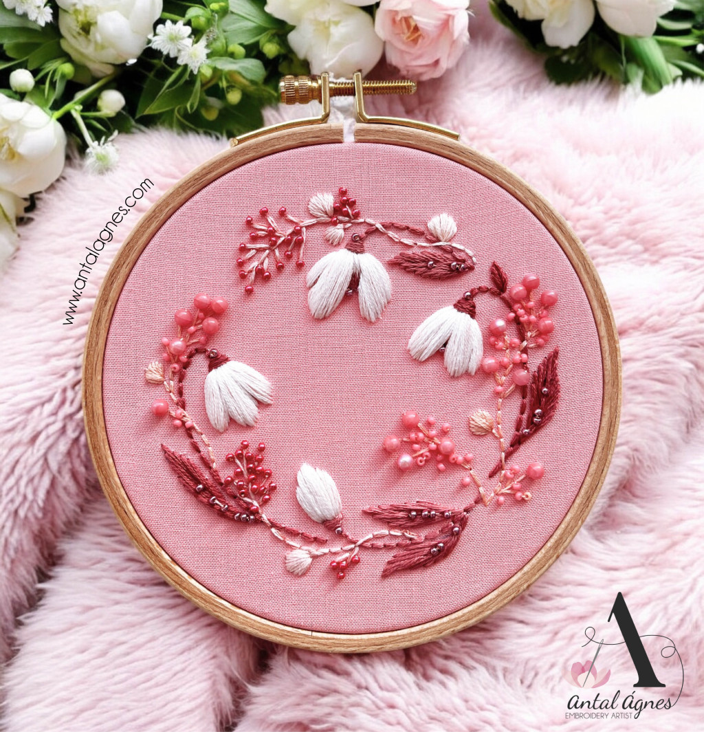 The fabric printed with the "SPRING AWAKENING" embroidery kit design.