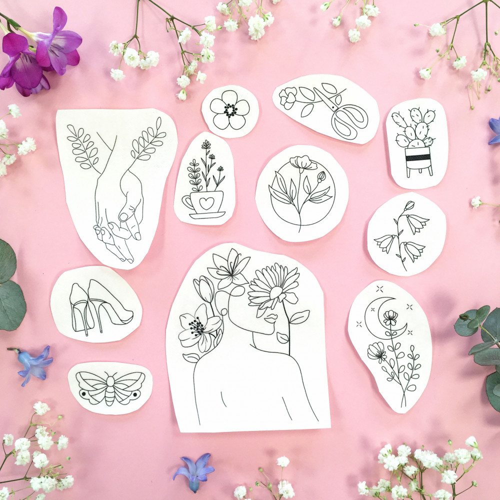 Feminine and whimsical patterns that make embroidery truly easy and enjoyable. With just 6 simple steps, you can create beautiful designs on clothes, jeans, bags, or any fabric you wish.