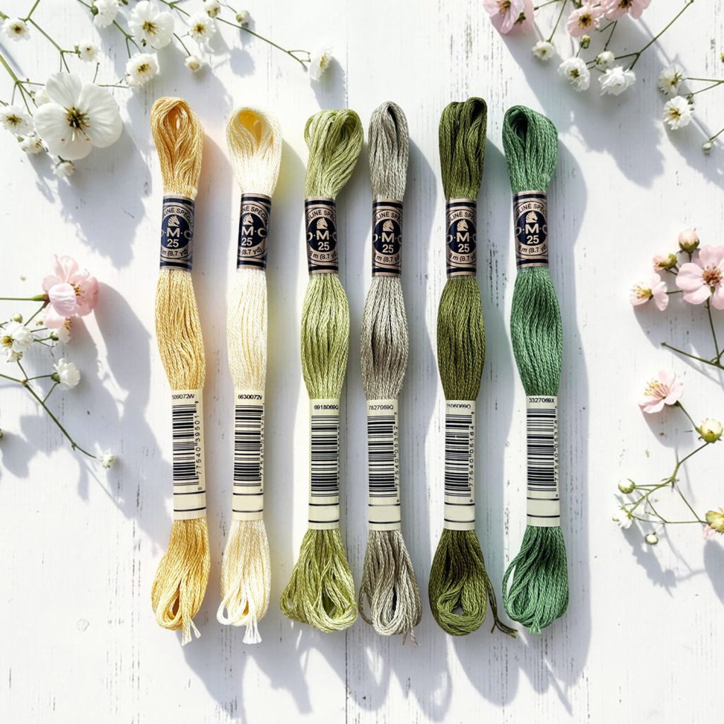 DMC Mouliné osztott hímzőfonalakból álló csomag, mely 6 db fonalat tartalmaz.