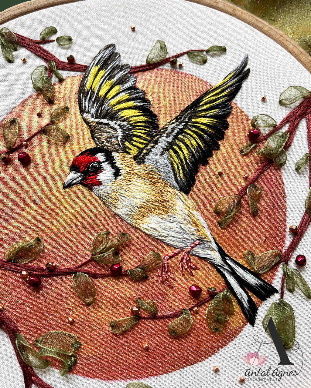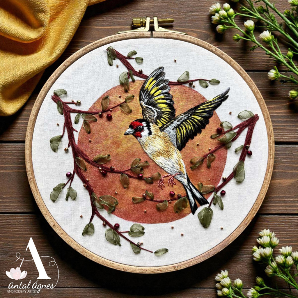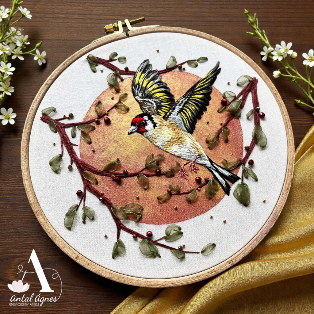 Ez a hímzőkészlet elsősorban a tűfestés technikájára koncentrál, de megtalálható benne egy kis szalaghímzés is, valamint akril festéket is alkalmazunk a háttér elkészítéséhez. A végeredményt pedig gyönyörű gyöngyök applikálása teszi még teljesebbé.