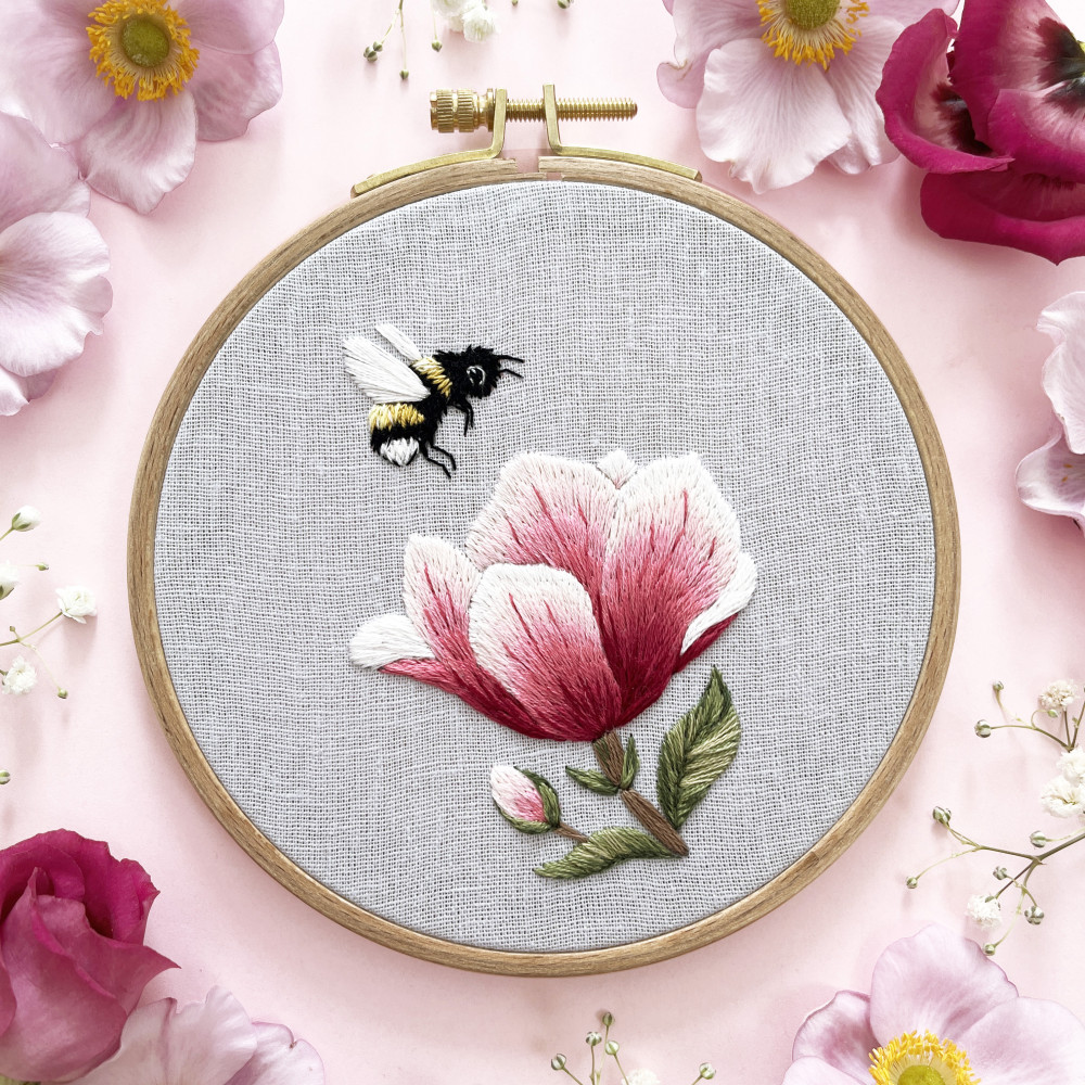 A "MAGNÓLIA" hímzőkészlet mintájával megnyomott kevert szálas len-pamut anyag. Az ár 1 db anyagra vonatkozik.