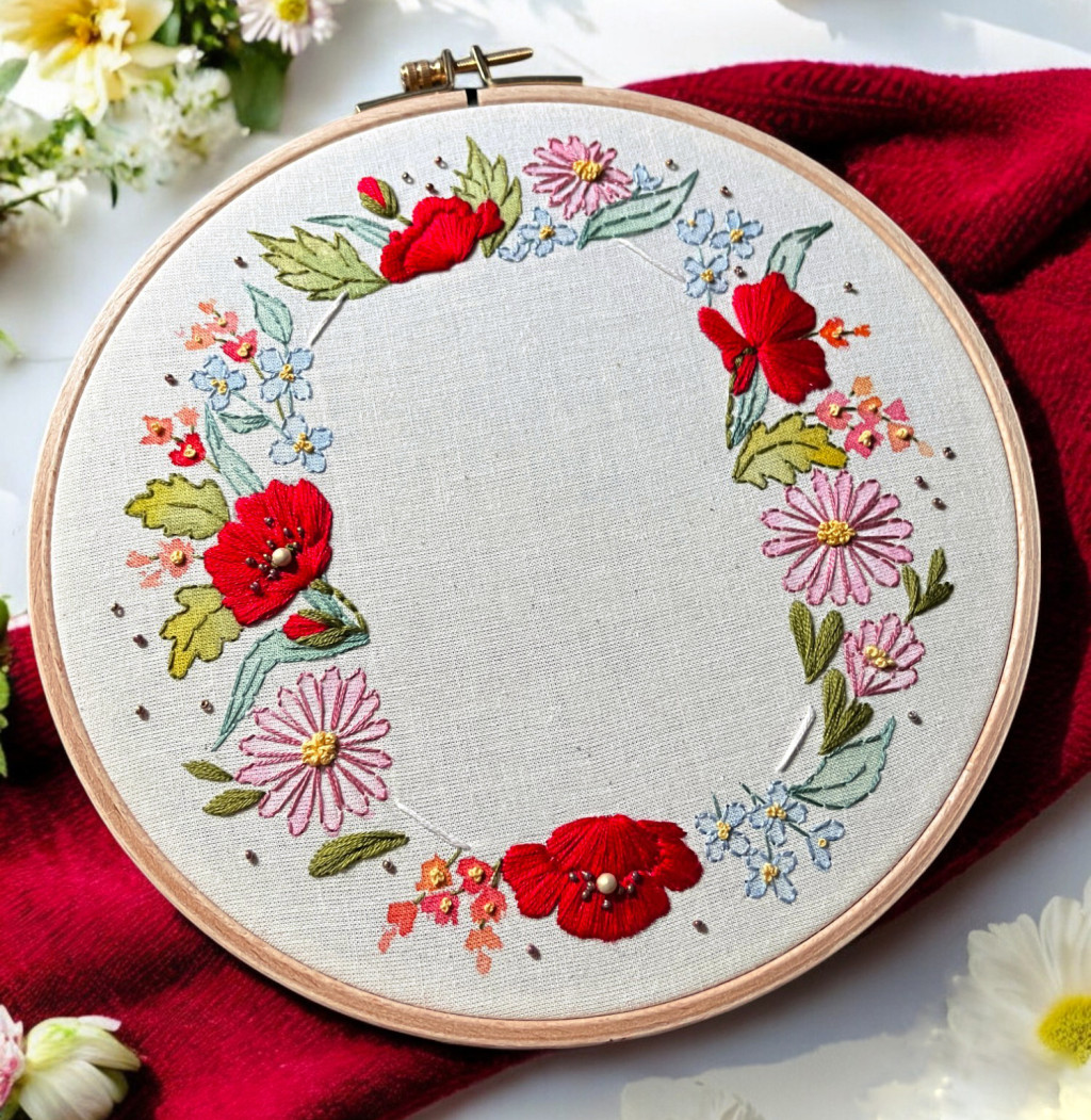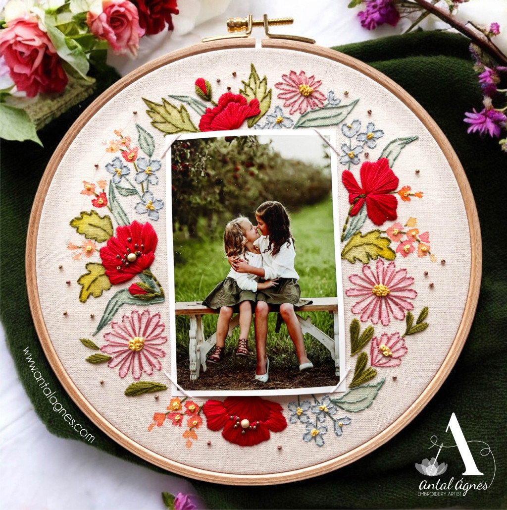 A " FESTETT & HÍMZETT KÉPKERET" hímzőkészlet mintájával megnyomott anyag.