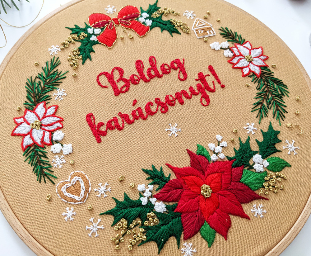 Az oktató videó részletesen bemutatja a karácsonyi koszorú hímzésének folyamatát: lépésről-lépésre megismerkedünk az egyes öltéstípusokkal, illetve együtt hímezzük végig a teljes alkotást. A videóban sok hasznos tippel és tanáccsal is találkozhattok.