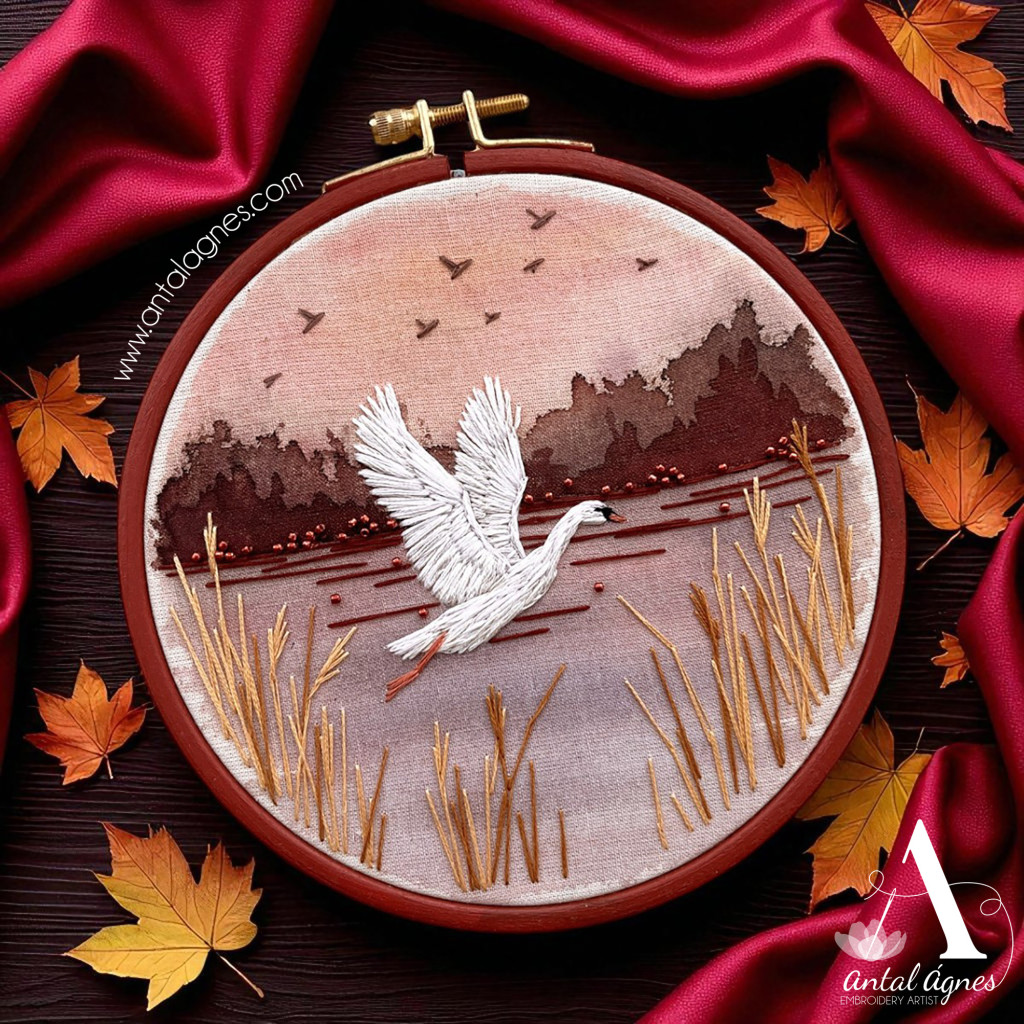 A hímzőkészlet segítségével Te magad is el tudod készíteni ezt a hangulatos őszi képet, melyben ötvözzük az akvarell festést és a hímzést.